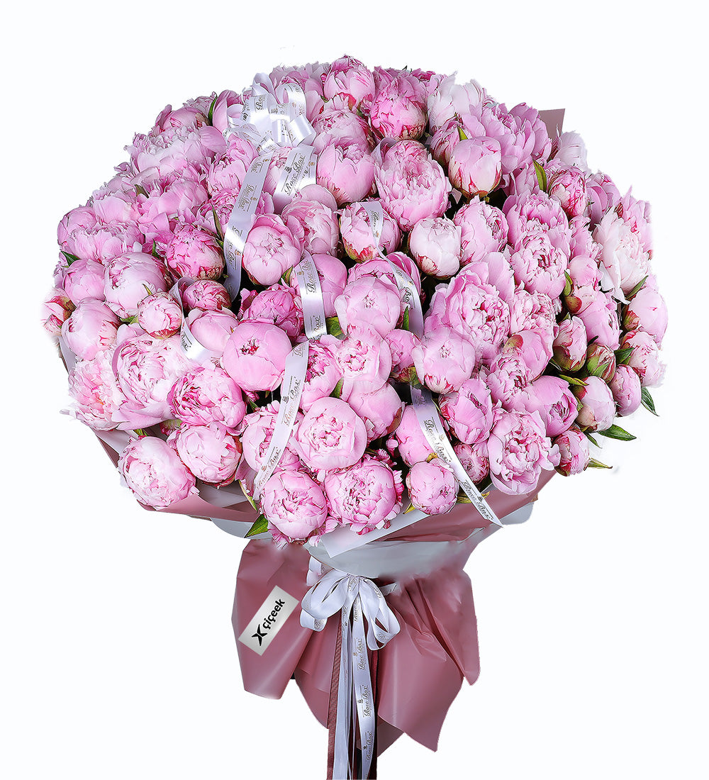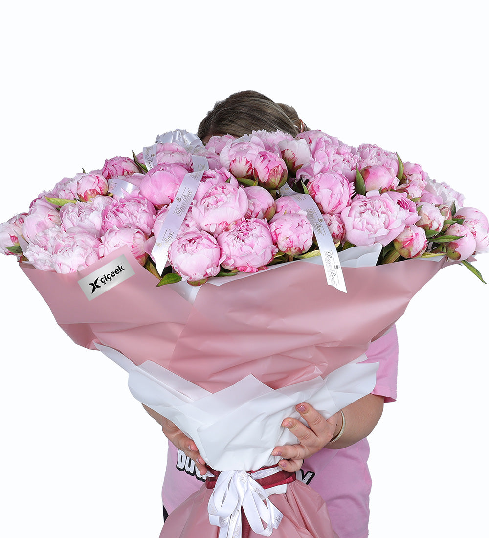 "Çiçeklerin kraliçesi" olarak bilinen şakayık, katman katman açılan yaprakları ve büyüleyici kokusuyla zarafetin tanımını yeniden yapar. 101 adet taptaze şakayıktan oluşan bu devasa buket ise bolluğun, bereketin, aşkın ve şansın en cömert ifadesidir. Hayatınızdaki o en özel kişiye, en unutulmaz jesti yapmak, nefes kesici bir "evet" duymak veya dillere destan bir özür dilemek için bu buketten daha etkileyicisi olamaz.Görsel Bir Şölen, Unutulmaz Bir Anı