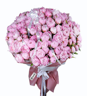 Her biri en güzel anında toplanmış, dolgun ve gösterişli 101 şakayık, adeta bir sanat eseri gibi bir araya getirilir. Bu buket, sadece büyüklüğüyle değil, aynı zamanda renklerinin pastel tonlardaki harmonisi ve yaydığı o eşsiz, tatlı kokuyla da hafızalara kazınır. Girdiği her mekanı anında bir peri masalı bahçesine çeviren bu aranjman, en özel anlarınızın en görkemli şahidi olacak.Aşkın ve Lüksün En Saf Hali