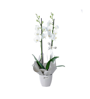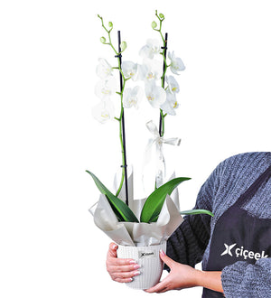 Asaletin ve masumiyetin simgesi beyaz orkide, şimdi en zarif formuyla evinize veya sevdiklerinizin kalbine konuk olmaya geliyor. İki adet çiçek dolu dalıyla göz dolduran bu beyaz orkide, her türlü dekorasyona uyum sağlayan, zamansız bir güzelliktir. Sadece bir çiçek değil, aynı zamanda kalıcı bir zarafet sembolüdür.Her Mekana Işık Katan Güzellik