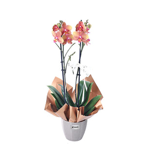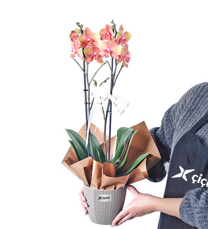 Bu enerjik orkidenin canlı renklerini ve sağlığını korumak çok kolay. Yeterli ışık ve düzenli sulama ile size uzun süre eşlik edecektir. Bu sıcak ve davetkar güzelliği hayatınıza veya sevdiklerinizin hayatına katın.2 Dallı Caramel Orkide