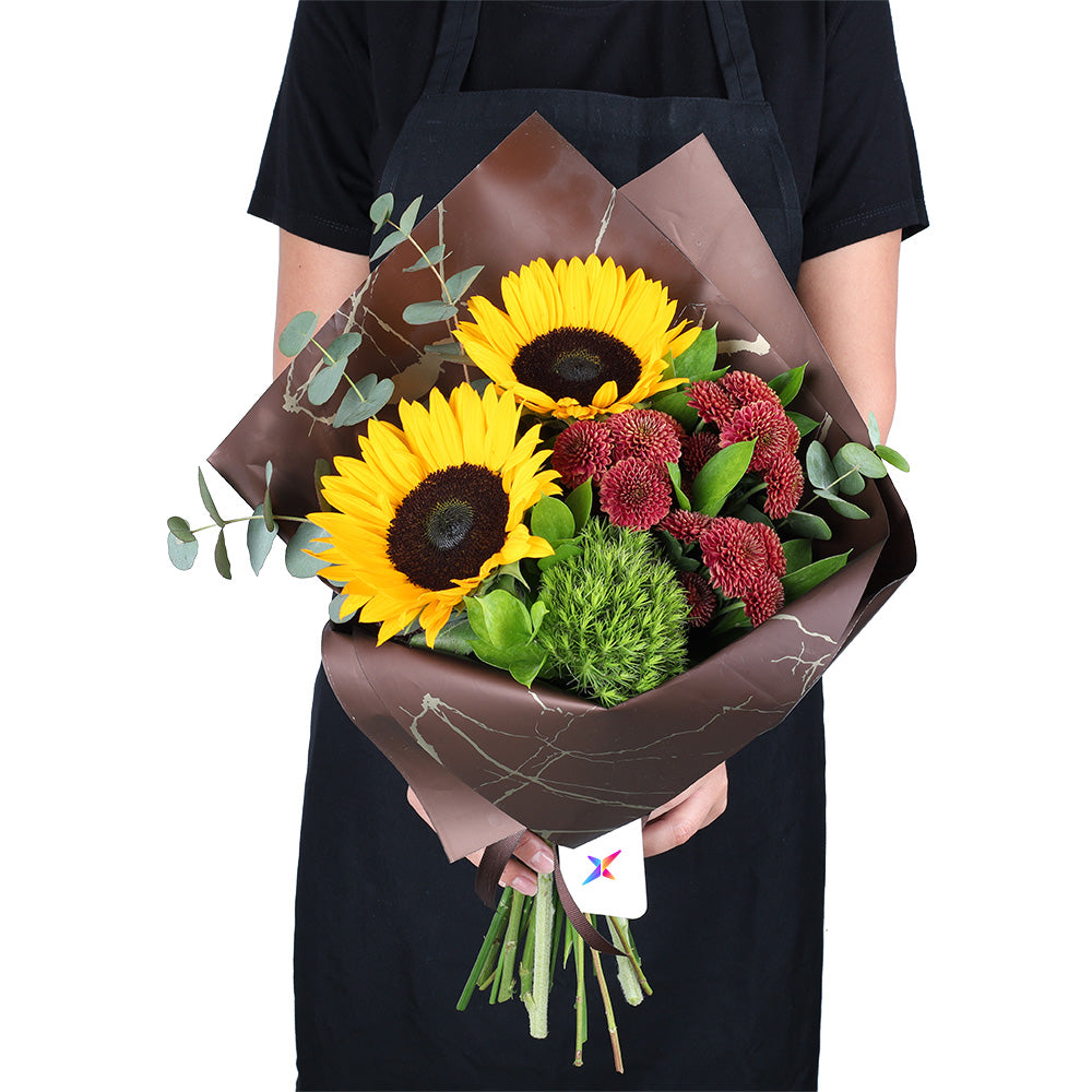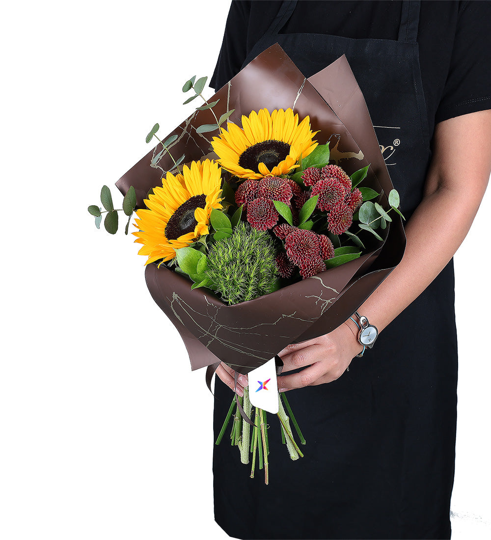 En taze ayçiçekleri ve en güzel biçme çiçekler, siparişiniz üzerine sizin için bir araya getirilir. Bu doğal güzelliğin formunu koruması için özenle paketlenir ve size veya sevdiklerinize en taze haliyle, güvenle ulaştırılır.Ayçiçeği Ve Kahverengi Biçme Buketi