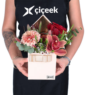 Kahve, krem ve bej tonlarının hakim olduğu bu aranjman, sıcak ve davetkar bir atmosfer yaratır. Farklı çiçeklerin dokularının ve formlarının birleşimi, bu aranjmanı adeta üç boyutlu bir sanat eserine dönüştürür. Olgun ve derin bir güzelliği takdir edenler için idealdir.Anlamlı ve Düşünceli Bir Jest