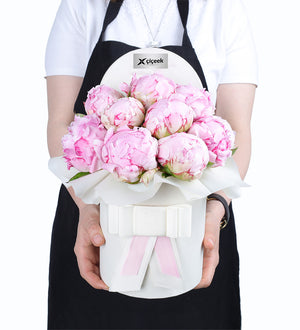 Romantizmin kraliçesi pembe şakayıklar, şimdi en şık tahtında... Dokusuyla lüks bir his uyandıran beyaz kadife bir silindir kutu içerisinde sunulan bu pembe şakayık aranjmanı, modern ve romantik bir hediye arayanlar için tasarlandı. Gören herkesi kendine hayran bırakacak, stil sahibi bir jest.Görsel ve Dokunsal Bir Şölen