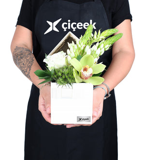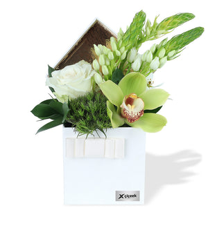 En taze beyaz güller ve onlarla en iyi uyumu sağlayacak mevsim çiçekleri, usta tasarımcılarımız tarafından özenle bir araya getirilir. Bu saf güzelliğin size veya sevdiklerinize ilk anki tazeliğiyle ulaşması için kutusu özenle hazırlanır ve güvenle teslim edilir.