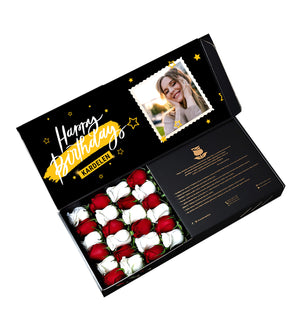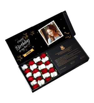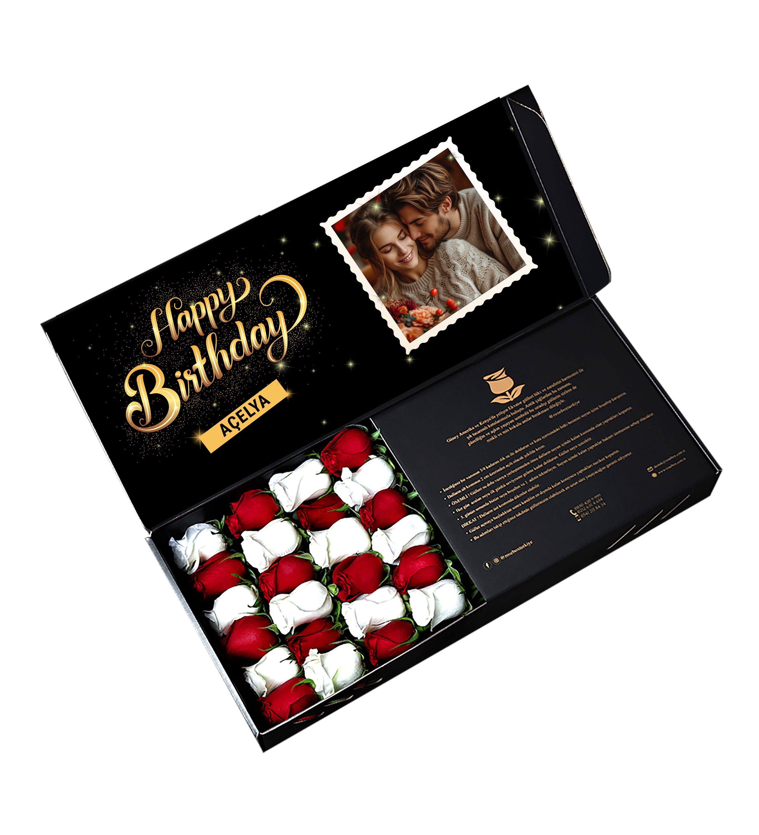 Gül, tarih boyunca aşkın, tutkunun ve saflığın en güçlü sembolü olmuştur. Kutumuzdaki canlı Kırmızı Güller, derin bir sevgi ve tutkuyu ifade ederken, zarif Beyaz Güller masumiyeti, saygıyı ve kalpten gelen sevgiyi temsil eder. Kırmızı ve beyazın bu mükemmel uyumu, "Happy Birthday" mesajınızın ve fotoğraflı kutu üzerindeki en güzel anınızın altını çizer. Sevdiklerinize unutulmaz bir doğum günü yaşatmak için anlam dolu bu gül kompozisyonunu şimdi keşfedin.