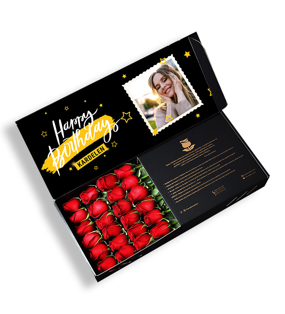 Hediyenizi benzersiz kılmanın yolu kişiselleştirmeden geçer. "Happy Birthday" mesajlı fotoğraflı baskılı kutumuz, seçtiğiniz en güzel anının görselini yüksek çözünürlüklü UV baskı ile kalıcı hale getirir. Bu özel dokunuş, sadece bir çiçek göndermekten çok daha fazlasını ifade eder; duygusal bağınızı ve paylaştığınız hatıraları ölümsüzleştirir. Kişiye özel kutuda kırmızı gül, doğum günü hediyelerinin en görkemli ve anlamlısıdır.