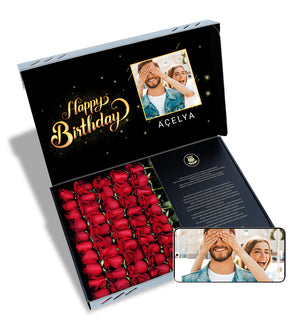 Doğum gününü kutlamanın en kişisel, en romantik ve en gösterişli yolu! Tam 50 adet capcanlı kırmızı gül, üzerinde sevdiğinizin ismi ve en güzel anınızın fotoğrafı olan özel tasarım bir kutu içinde sunuluyor. Bu, sadece bir hediye değil, ömür boyu saklanacak kişisel bir anıdır.Sadece Ona Özel Bir Hediye