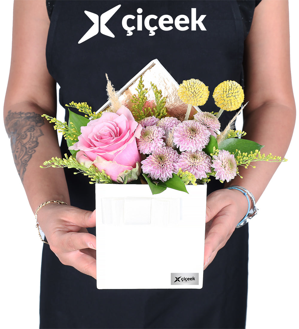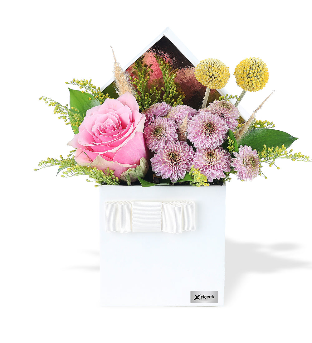 Güllerin klasik güzelliği, papatyaların doğal ve neşeli duruşuyla harika bir denge yakalıyor. Pembenin en tatlı tonlarını barındıran bu aranjman, krem kutunun modern duruşuyla girdiği her ortama anında pozitif bir enerji ve sıcak bir sevgi atmosferi katar.Her Duruma Uygun İçten Bir Hediye