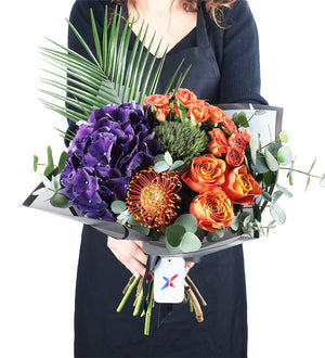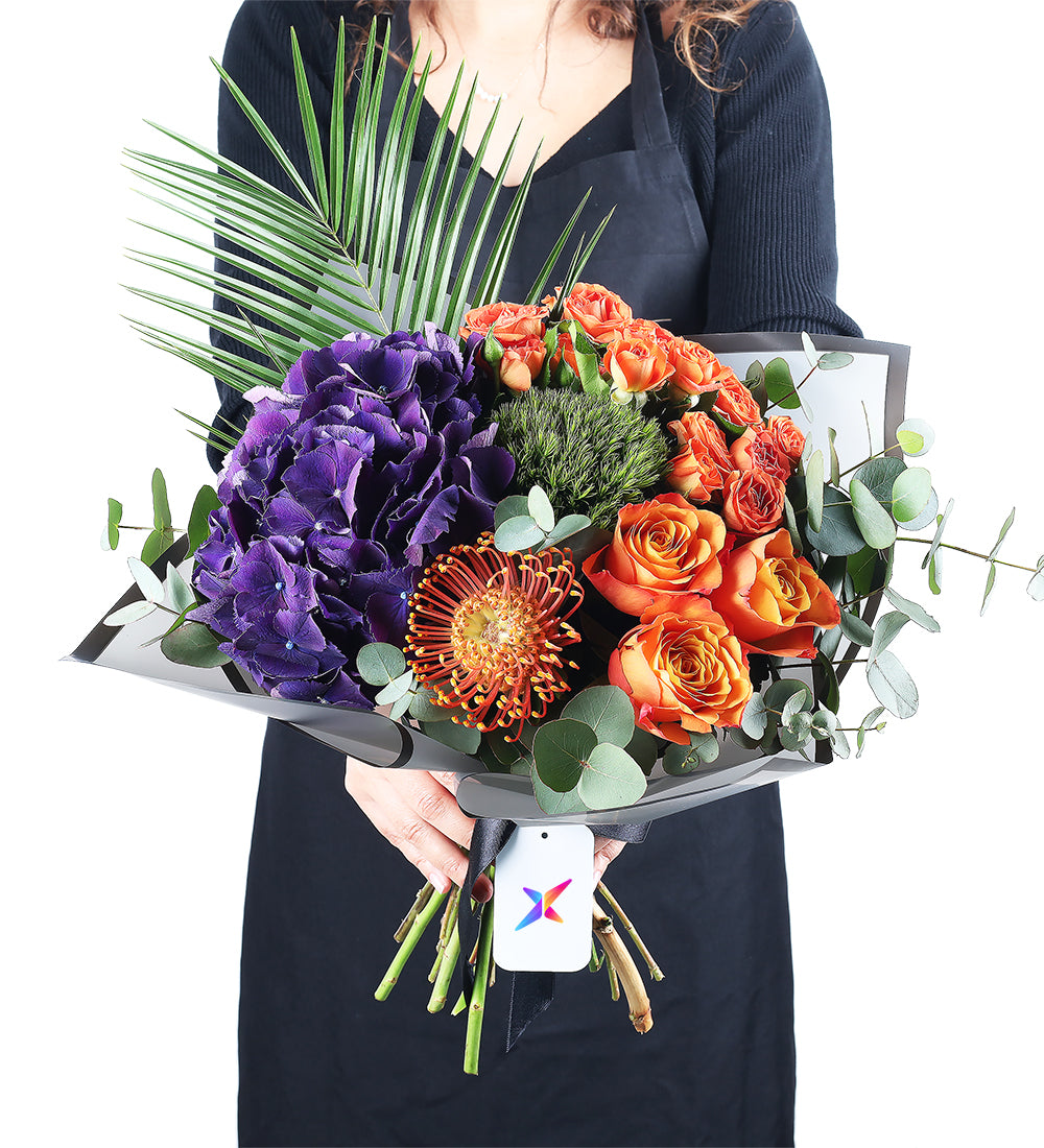 Turuncu ve morun yarattığı canlı kontrast, bu buketi standart aranjmanlardan ayırarak adeta bir sanat eserine dönüştürür. Girdiği her ortama anında bir dinamizm ve sofistike bir hava katar. Farklıyı sevenlerin kalbini çalacaktır.Yaratıcılığın ve Tutkunun İfadesi