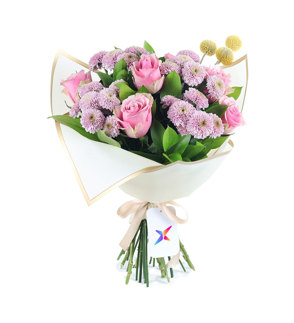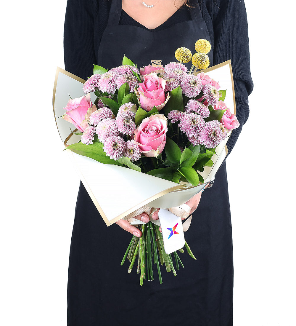 Bu gösterişli buketi hazırlamak için en canlı pembe gülleri ve en taze papatyaları kullanıyoruz. Hacmini ve doğal formunu koruyacak şekilde paketleyerek, bu kucak dolusu mutluluğun kapınıza kadar ilk anki canlılığıyla gelmesini sağlıyoruz.