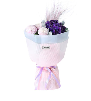 En taze pembe anastasyalar ve en canlı mor ortancalar, usta tasarımcılarımız tarafından estetik bir dengeyle bir araya getirilir. Bu özel buketin formunu ve tazeliğini koruyarak size veya sevdiklerinize ulaşması için özenle paketlenir.Pembe Top Anastasia Ve Mor Ortanca Yeni Trend Buket