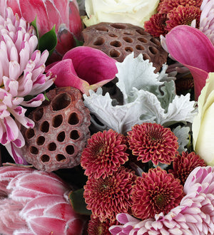 En kaliteli ve en taze egzotik çiçekler, bu büyük buketi oluşturmak için özenle seçilir. Hacmini ve estetik formunu koruyacak şekilde paketlenerek, bu unutulmaz hediyenin kapınıza kadar ilk anki tazeliğiyle gelmesi sağlanır.Protea Anastasya Gala Ve Lotus Çiçek Buketi (L)