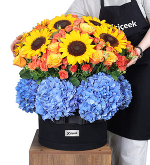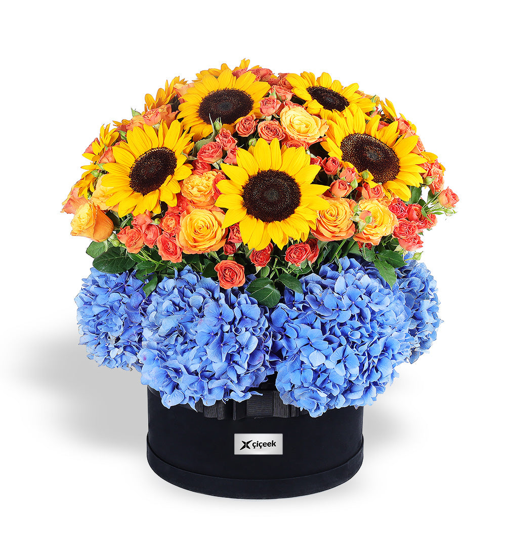 Bu gösterişli aranjmanı kaydetmek için en kaliteli ve en taze çiçekler için. Hacmini ve sanatsal bütünlüğünü ayrı ayrı paketleyerek, bu muhteşem hediyenin kapısına kadar ilk anki canlılığıyla korunabilir.Dev Kutuda Panoramik Ayçiçeği Ve Ortancalı Çiçek Aranjmanı