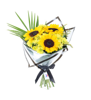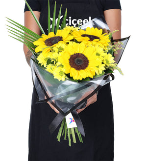 En kaliteli ve en canlı ayçiçekleri ile papatyalar, siparişiniz üzerine sizin için bir araya getirilir. Bu enerji dolu buketin yolculukları boyunca ömrünü kaybetmemesi için seçilmiş paket