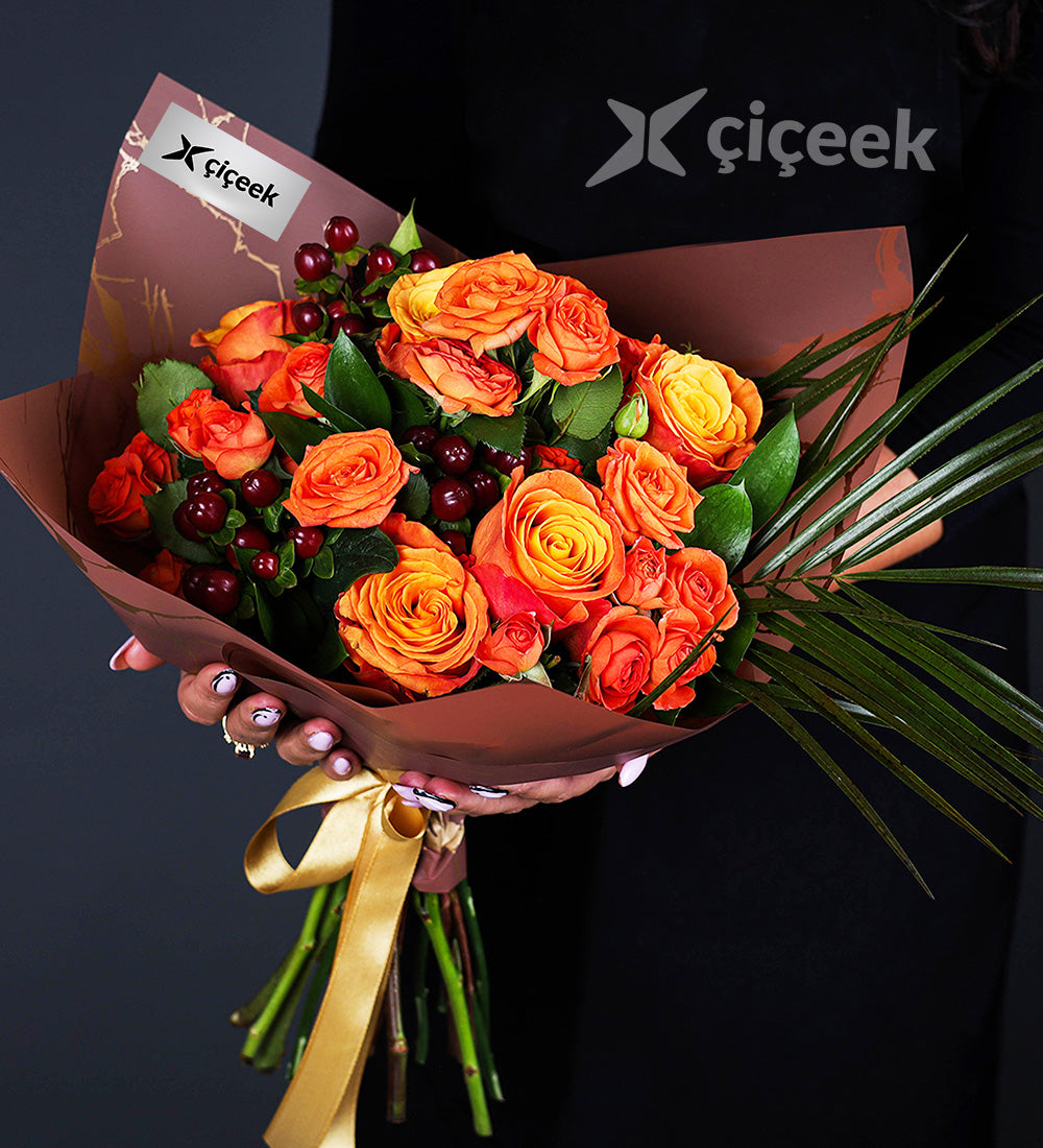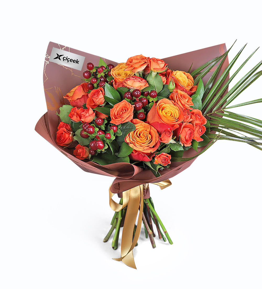Ateşin ve güneşin rengini taşıyan bu güller, her biri en canlı tonlarda özenle seçilerek buket haline getirilir. Turuncunun enerjisi, güllerin klasik formuyla birleşerek ortaya hem samimi hem de etkileyici bir görüntü çıkarır. Bu buket, sıradan bir günü anında özel bir ana dönüştürme gücüne sahiptir.Pozitif Duyguların En Güzel İfadesi