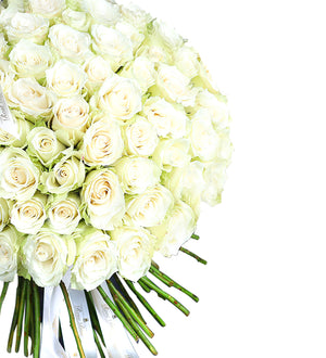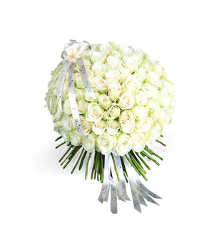 Sizin için özenle seçilmiş 100 adet taze beyaz gül, ustalıkla bir buket haline getirilir. Güzelliklerini ve canlılıklarını koruyarak size veya sevdiklerinize ulaşması için özel olarak paketlenir. Maksimum etki yaratmak için en doğru seçim!
