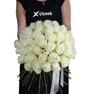 Sizin için özenle seçilmiş 50 adet taze beyaz gül, ustalıkla bir buket haline getirilir. Güzelliklerini ve canlılıklarını koruyarak size veya sevdiklerinize ulaşması için özel olarak paketlenir. Maksimum etki yaratmak için en doğru seçim!