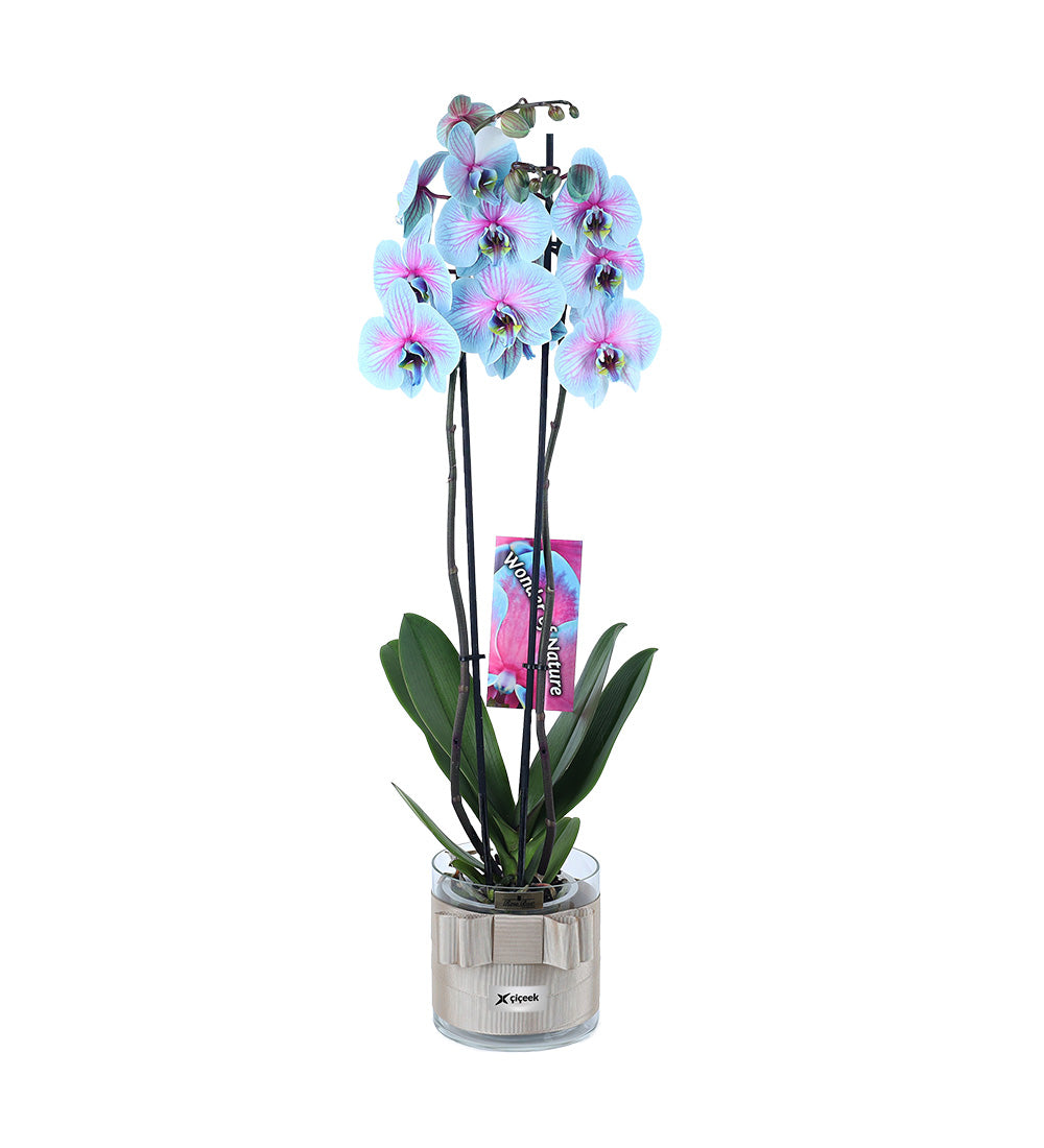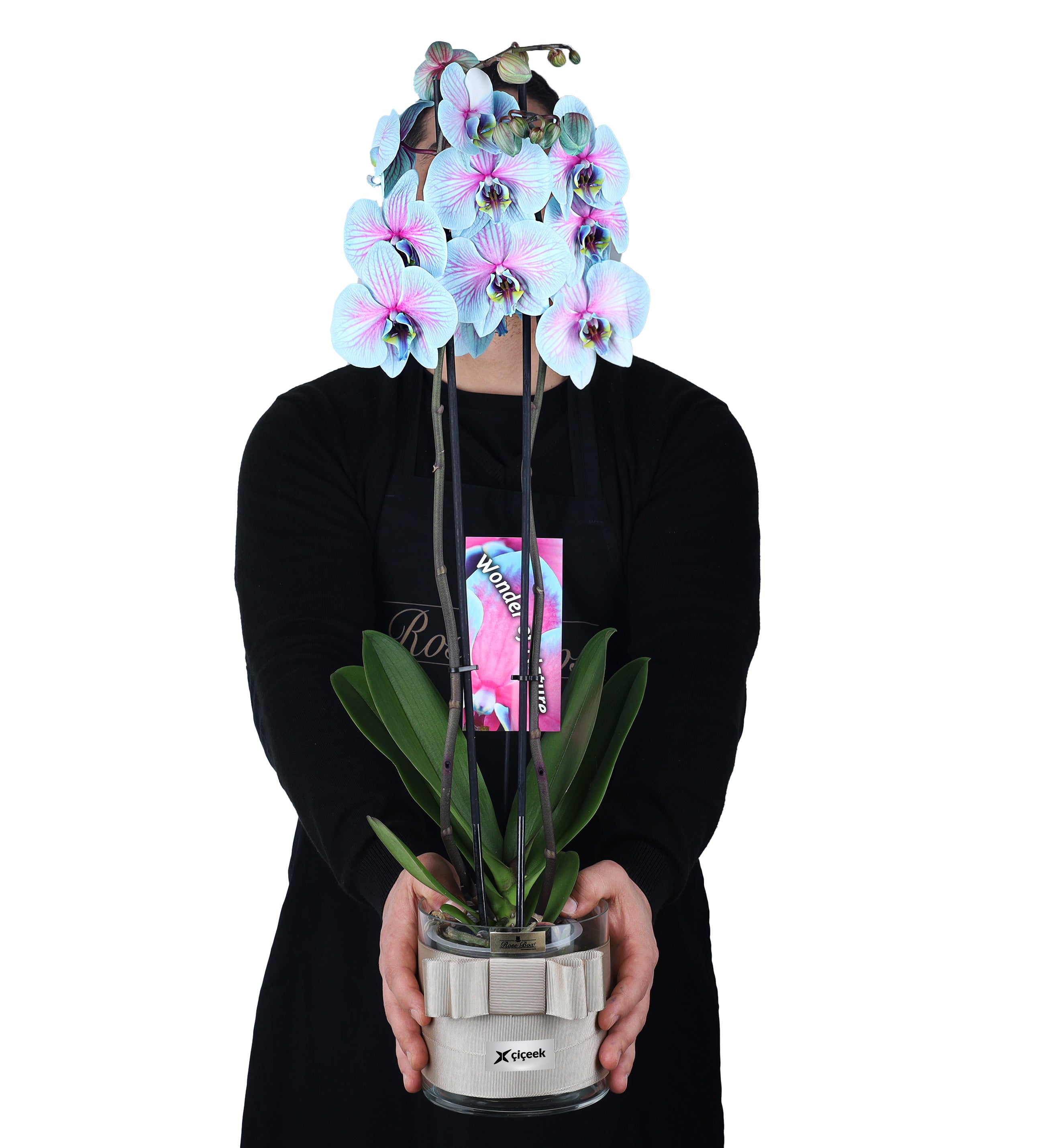 Hayal gücünün sınırlarını zorlayan bir çiçekle tanışın! "Wonder" serisi orkideler, pembe ve mavinin en masalsı tonlarını tek bir çiçekte buluşturarak adeta bir harikalar diyarı yaratır. Bu 2 dallı özel orkide, eşi benzeri olmayan, fantastik ve unutulmaz bir hediye arayanlar içindir.