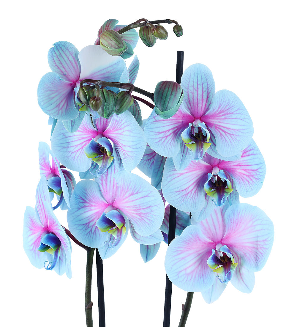Pamuk şekeri andıran pembe ve gökyüzünü anımsatan mavinin yumuşak geçişleri, bu orkideyi gerçeküstü bir sanat eserine dönüştürür. Geleneksel çiçeklerden sıkılan ve fark yaratmak isteyenler için mükemmel bir seçimdir. Genç odaları veya modern dekorasyonlar için eşsiz bir objedir.