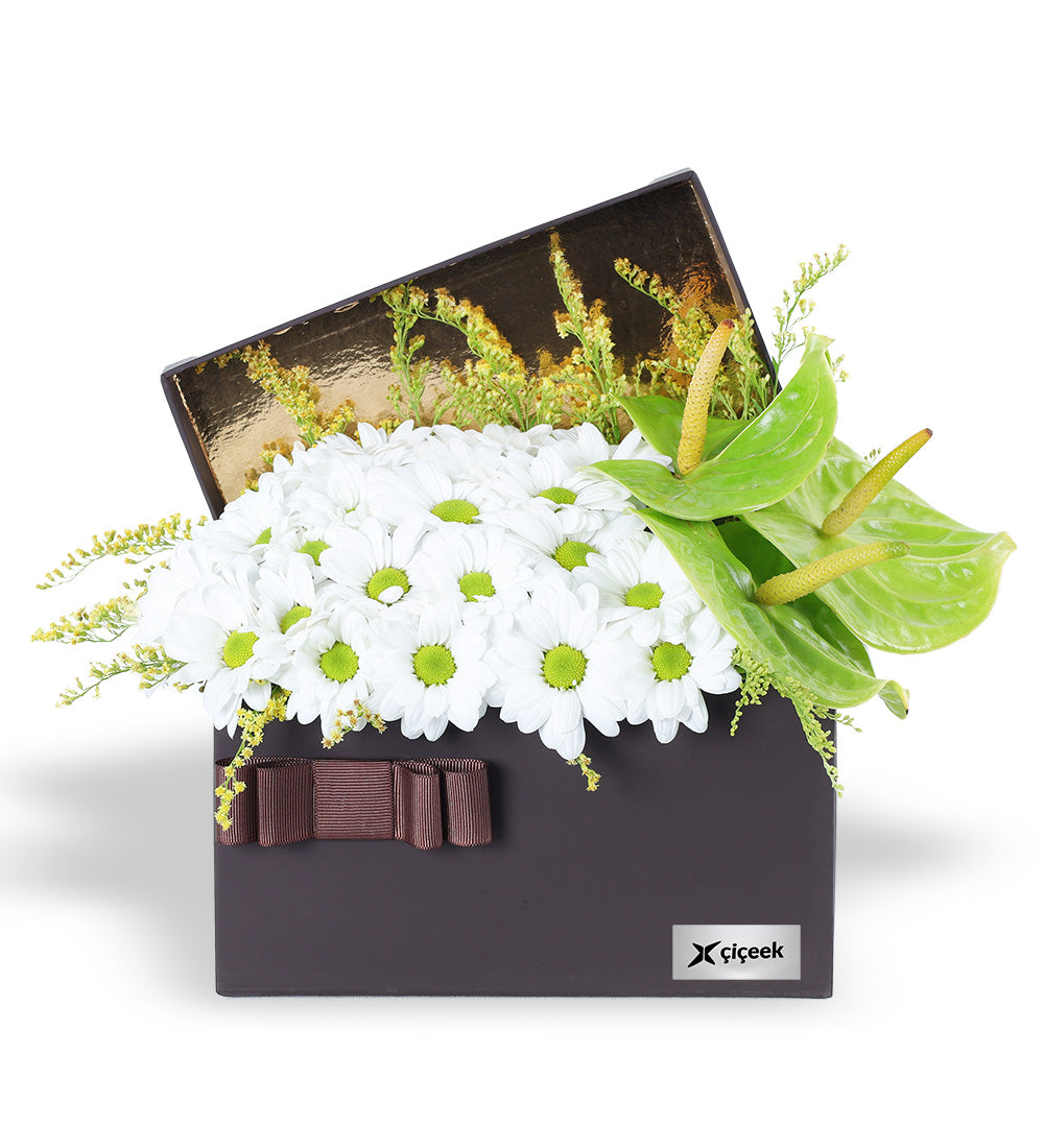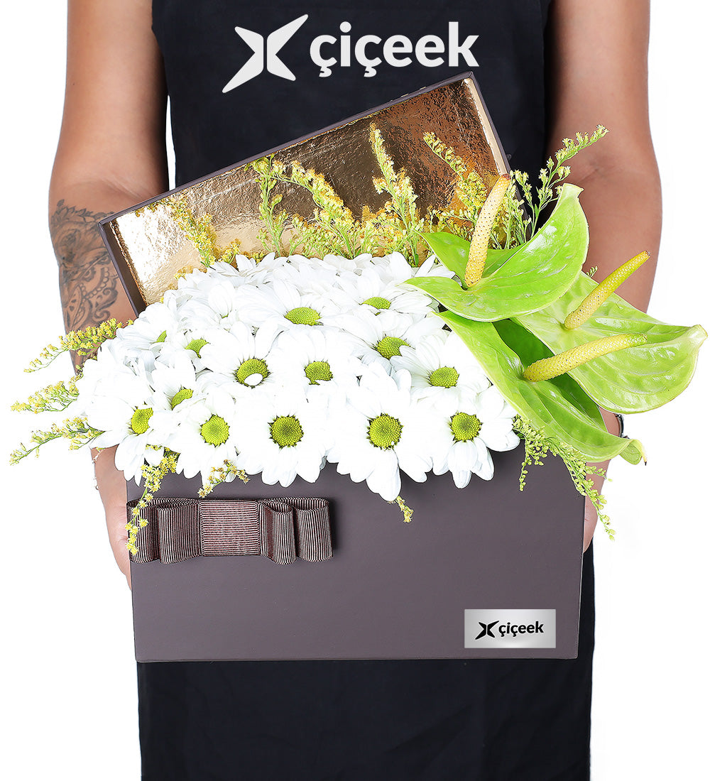 Doğallığın ve mutluluğun en büyük hali! Yüzlerce taptaze beyaz papatyadan oluşan bu XL aranjman, rustik ve şık bir kahverengi kutu içinde sunularak, kucak dolusu bir neşe ve sevgi ifadesi sunuyor. En büyük "geçmiş olsun" dilekleri, en içten tebrikler veya birinin gününü aydınlatacak dev bir sürpriz için mükemmeldir.