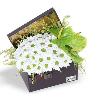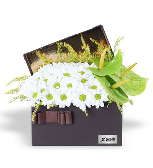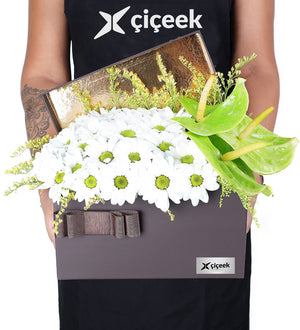 Standart boyuta göre çok daha hacimli ve zengin olan bu XL aranjman, girdiği her yerde anında bir odak noktası olur. Papatyaların o doğal ve samimi duruşu, kahverengi kutunun sıcaklığıyla birleşerek unutulmaz bir etki yaratır. Bu, sadeliğin en güçlü ve en gösterişli halidir.