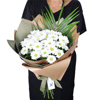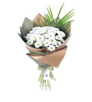 En taze ve en canlı beyaz papatyalar, siparişiniz üzerine sizin için özenle seçilir ve dolgun bir şekilde buket haline getirilir. Bu neşe dolu buketin, sevdiklerinize en parlak ve en taze haliyle ulaşmasını sağlıyoruz.