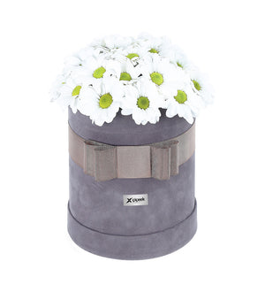En taze ve en dolgun papatyalar, siparişiniz üzerine sizin için özenle seçilir ve kutusuna yerleştirilir. Çiçeklerin tazeliğini koruması için özel olarak hazırlanan bu aranjman, sevdiklerinize en güzel haliyle ulaşırYuvarlak Gri Kadife Kutuda Beyaz Papatyalar